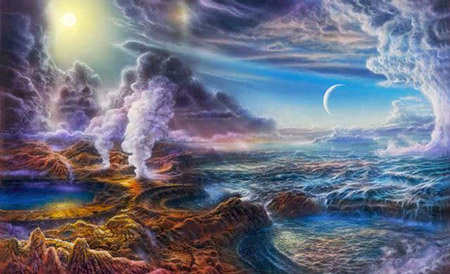 Lo que en principio fue un paisaje en ebullición se combina con una torre espejada de Norman Foster al pie de las montañas. Ese es el ámbito de Piscis. Por dentro servicios de hotelería sin personal. Por fuera un mundo primitivo con aguas termales, exhuberancias, plantas carnívoras y animales salvajes en reciprocidad absoluta con su terapia ambulatoria. Pueden pasar la tarde juntos. Pueden entrar en la torre y compartir la comida del frigobar.