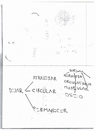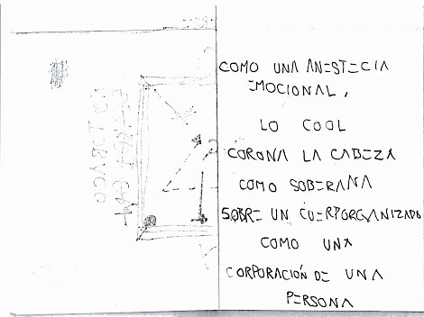 Odio que solamente puedo pensar en el concepto de "embodied" a través de esta palabra en inglés. "Encarnado" creo que no le hace una traducción justa. Lo encarnado está debajo de la piel, y lo "embodied" es la transformación en la piel misma. ¿Y si decimos que encarnamos el lenguaje, sería lo mismo que decir que nuestro cuerpo se transforma en lenguaje? Si el conocimiento habita el cuerpo, el cuerpo entonces es universo. El universo de las danzas, de los teatros, de las palabras y de las formas. Ahora, sí el conocimiento fuera el cuerpo, tendría todas las dudas en la palma de la mano para anotarlas sobre las paredes de mis piernas. Hago garabatos con las manos para inventar compañía, balbuceo un poema olvidado para encarnar el recuerdo. Conocimiento y cuerpo, conocimiento del cuerpo, cuerpo de conocimiento, ¿cuerpo?
