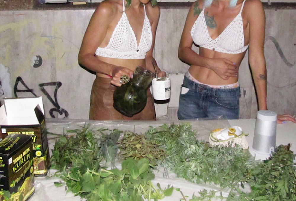 Puesto callejero de remedio yuyo para sets de tereré. Performance realizada dentro del marco del festival Perfuch 2 (2017) en UV Estudios.